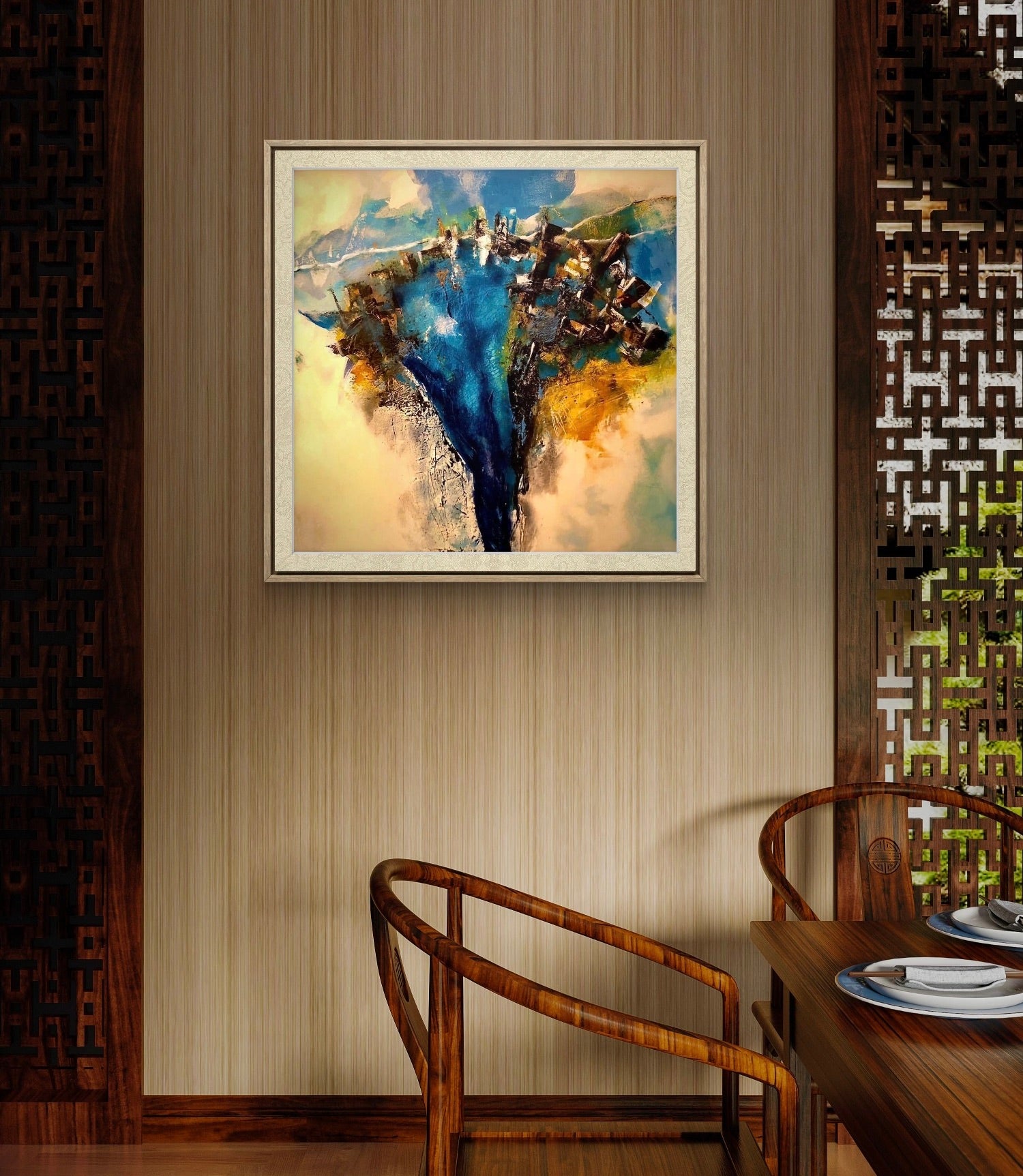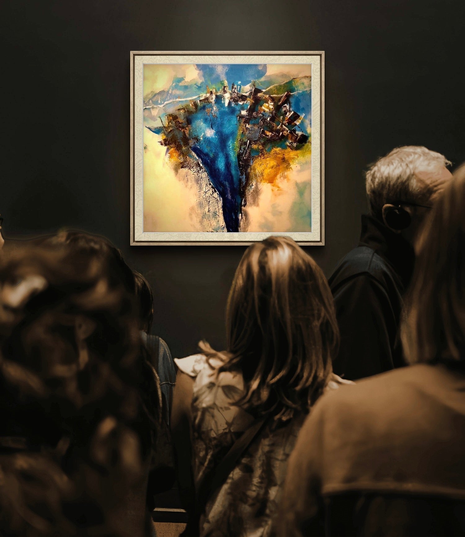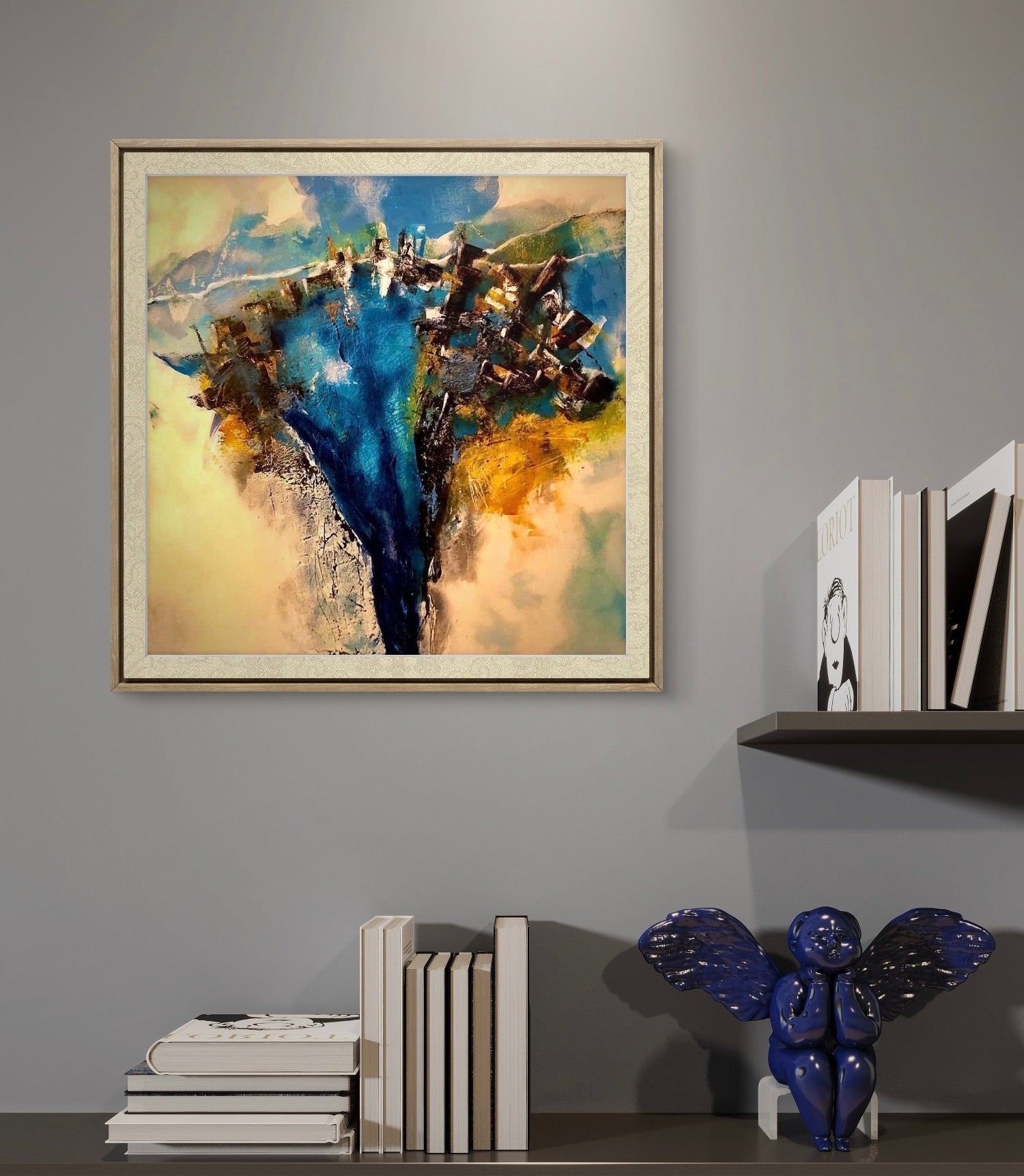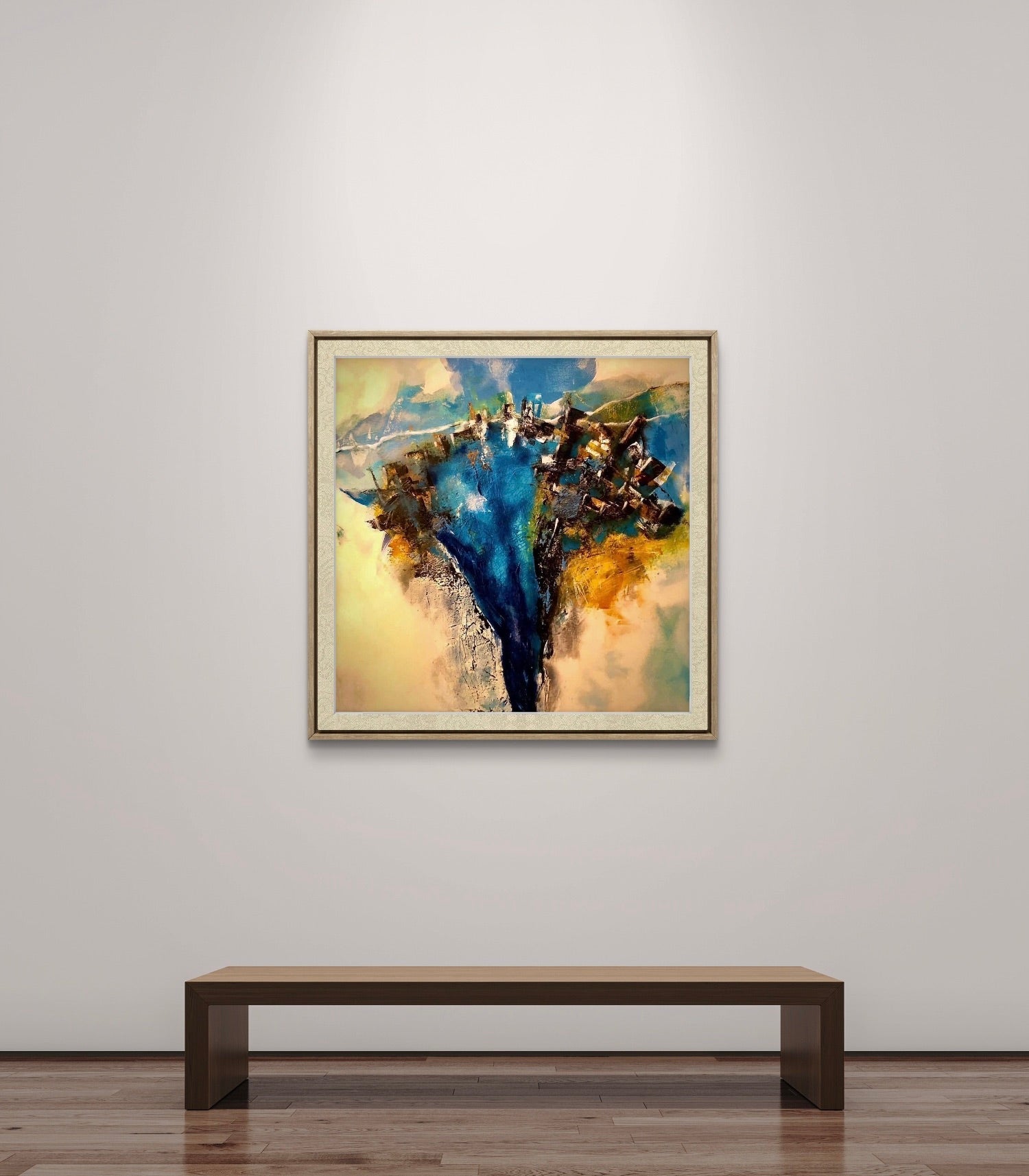 Belonging to the cycle of paintings "Geo-Logica", dedicated to the villages of central Italy hit by the earthquake in 2016, this painting represents the town of Pescara del Tronto painted in all its dramatic destruction. In the background the beauty of the "Monti Azzurri" mountain range acts as a counterpoint, also evoking the hope of rebirth.